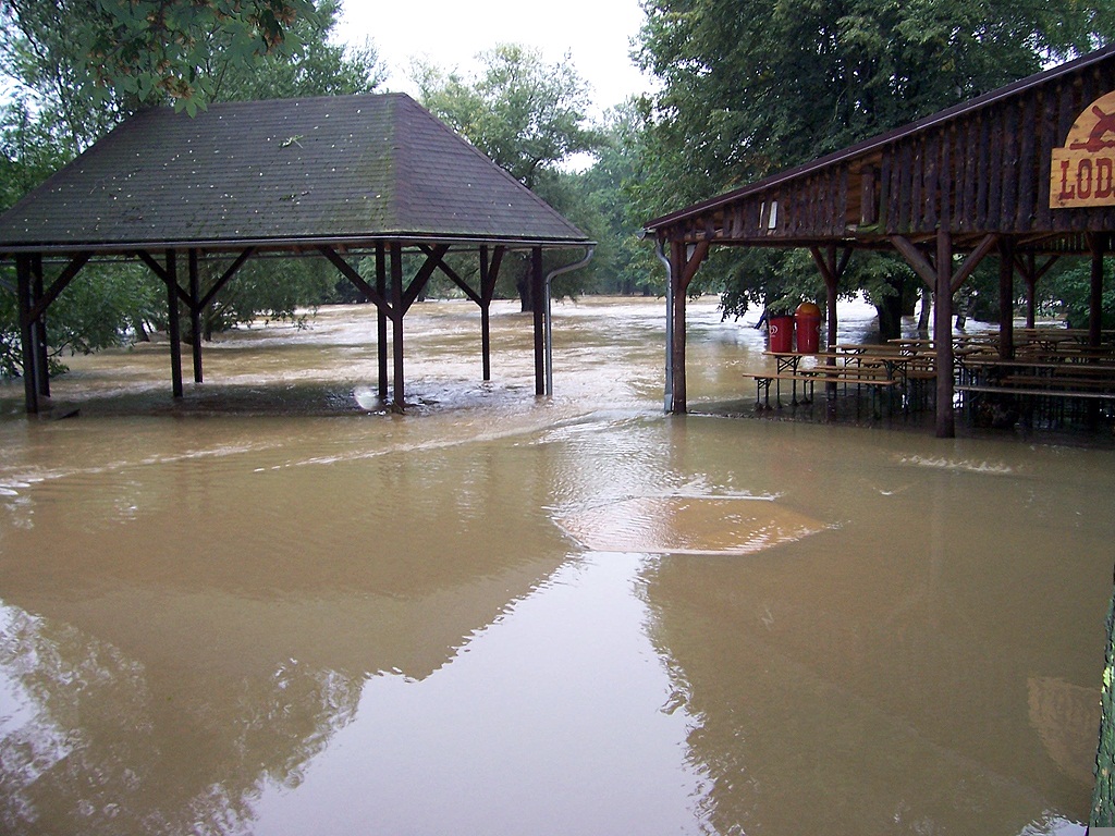Dne 8 září 2007 dorazila do naší obce povodňová vlna řeky Opavy, řeka se začala zvedat při vytrvalých deštích v celém povodí dne 6.9, na první stupeň povodňové aktivity vystoupila dne 7.9.v 5.00 ráno a třetí stupeň pak byl v obci vyhlášen 7.9. v 23.00 hod, voda kulminovala 8.9. kolem 5 hodiny ranní s hodnotami vodního stavu 410 cm a průtok 297,6 m³/ hod viz přiložený záznam stavu vody. Přinášíme několik fotografií z 8.9., z asi 9.00 ráno, z okolí loděnice.